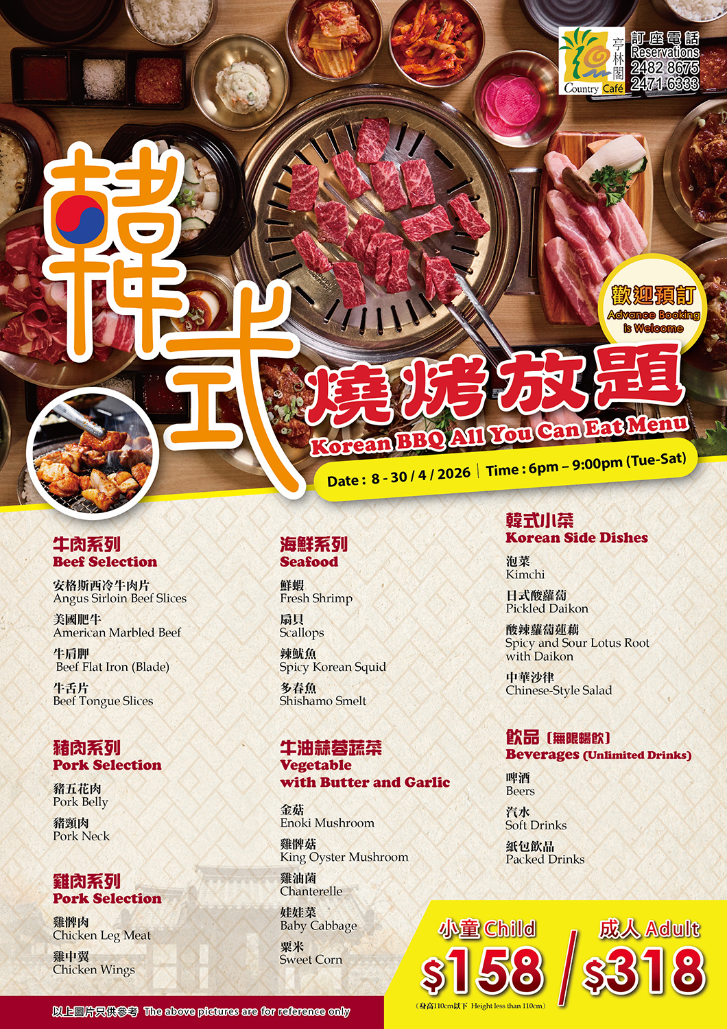Korean BBQ All You Can Eat Menu